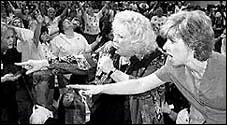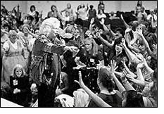 The Lord prompted Jill to prophesy to the leadership of the church so she called them forward. He then told her to call the members of the World Revival Church forward on the opposite side. After a few moments Jill faced them and simply said, "There He is," and the entire group of 50+ people fell simultaneously as if shot down by a firing squad. It was quite amazing!